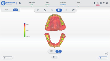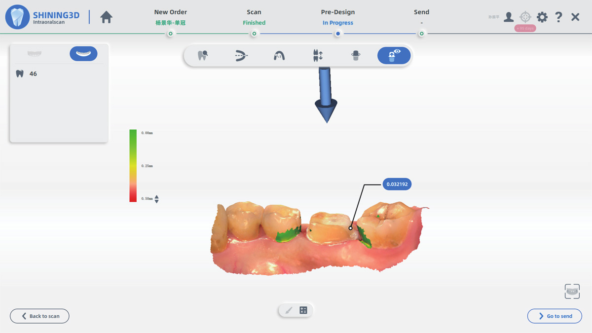 软件智能识别并摈除颊舌侧等杂余数据,实时数据干净清晰无 干扰,口扫更加快速准确。
